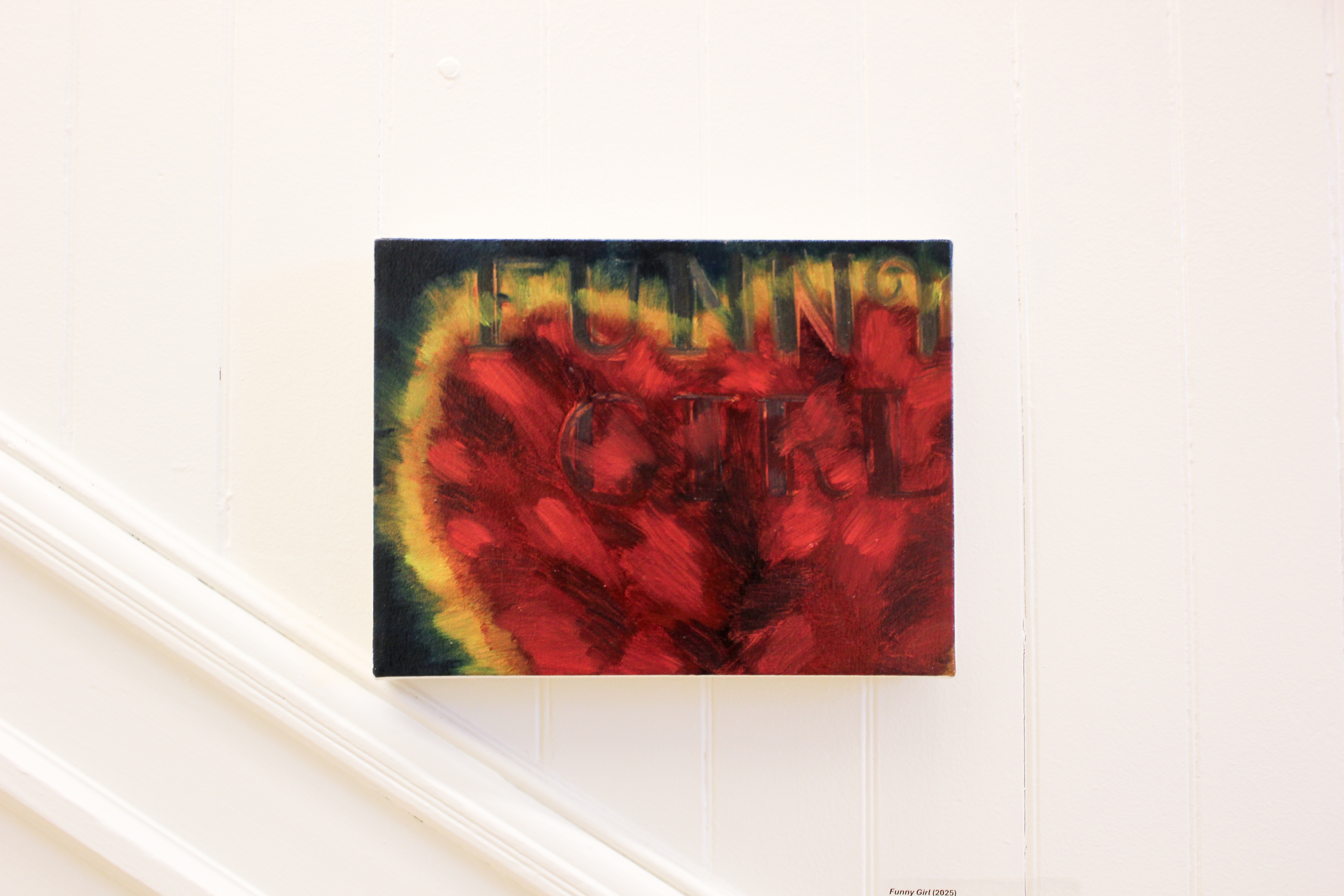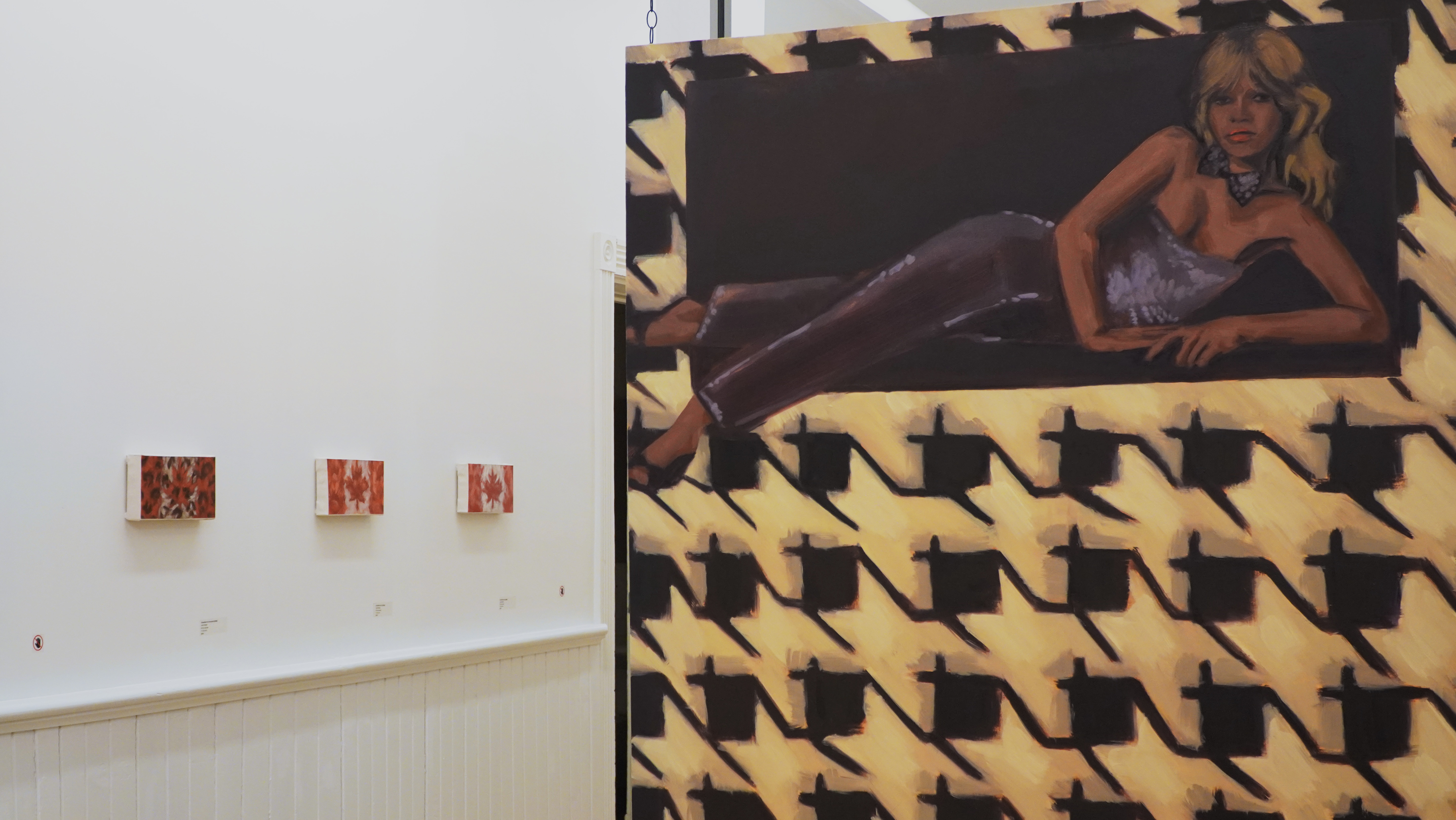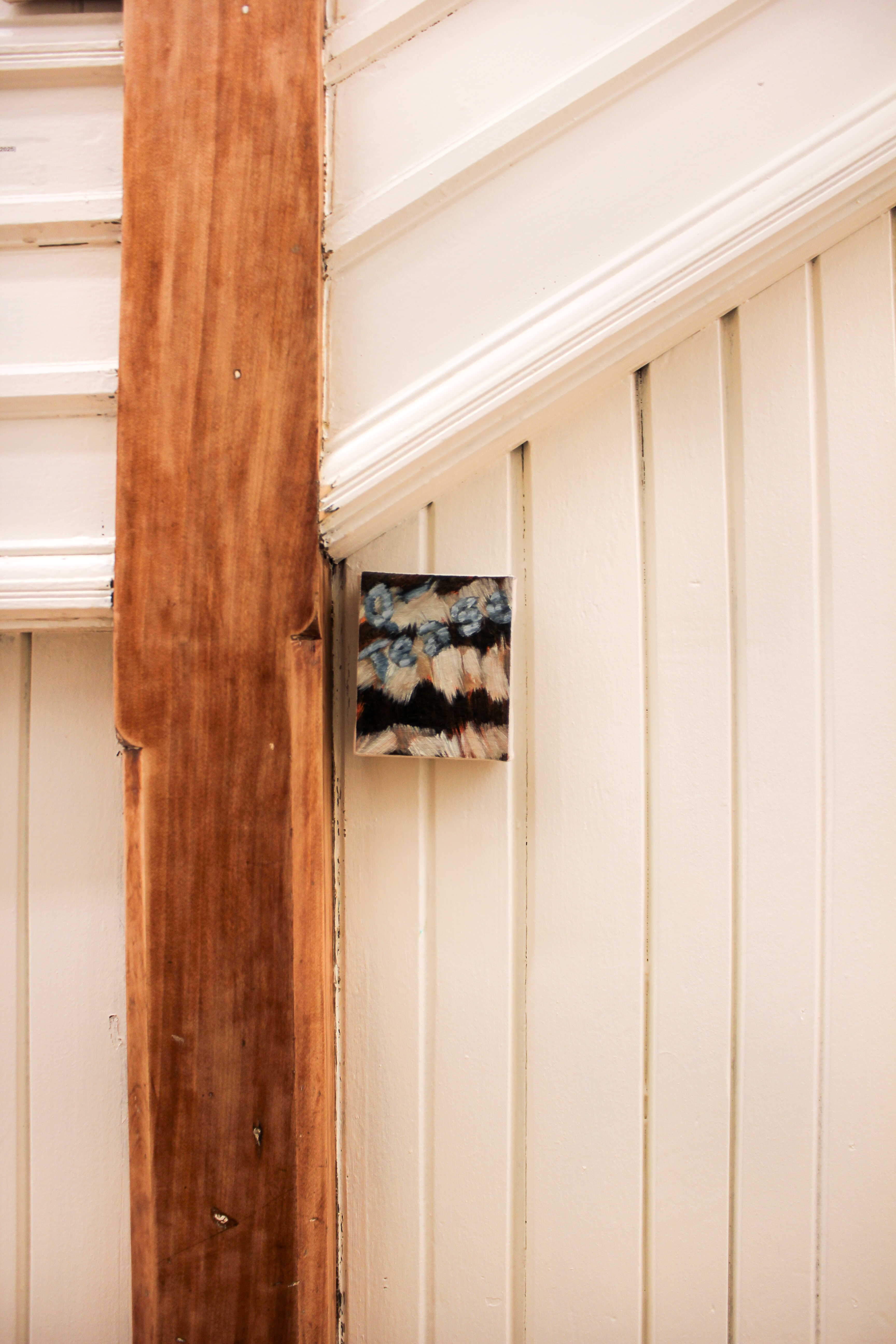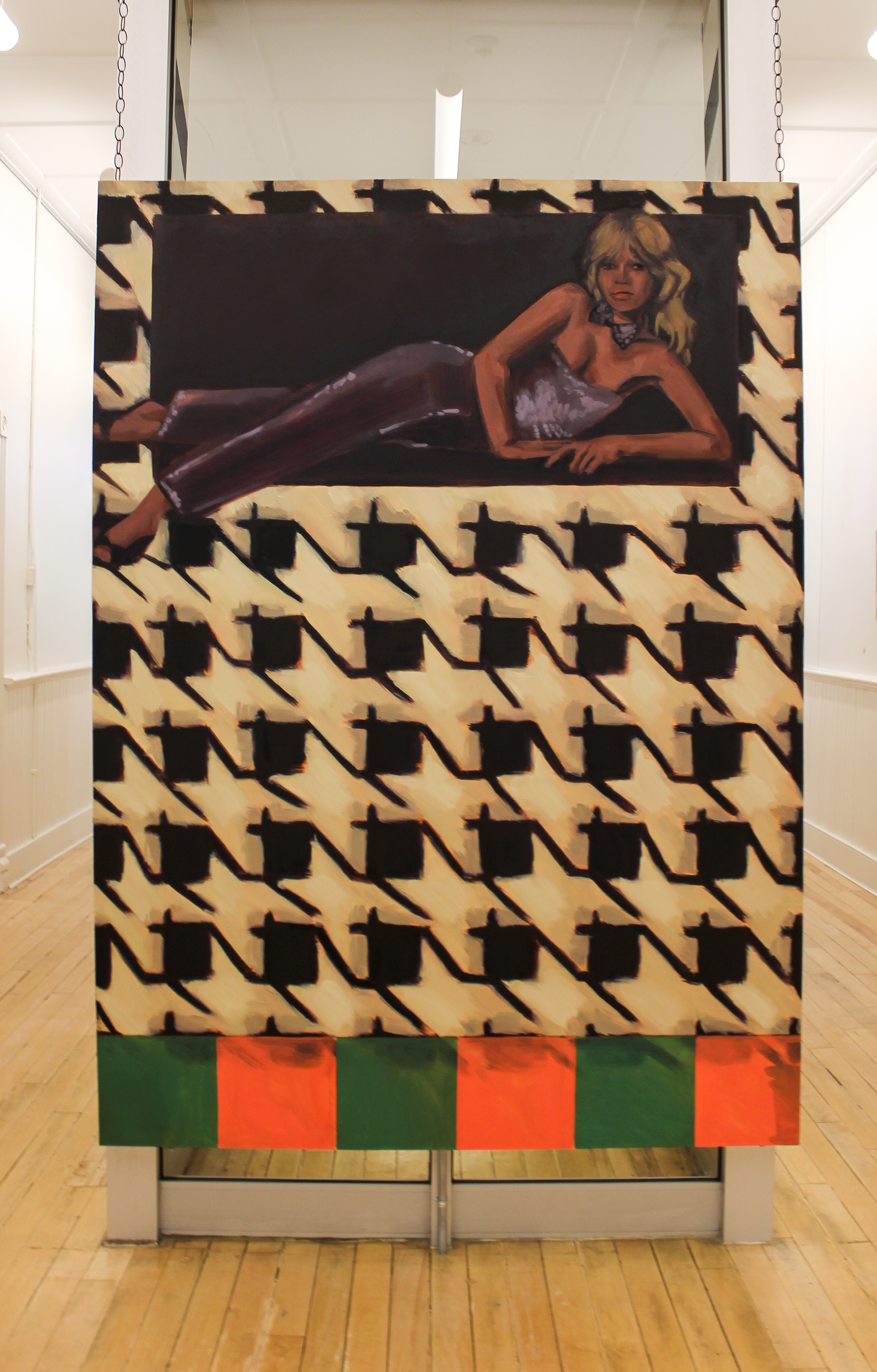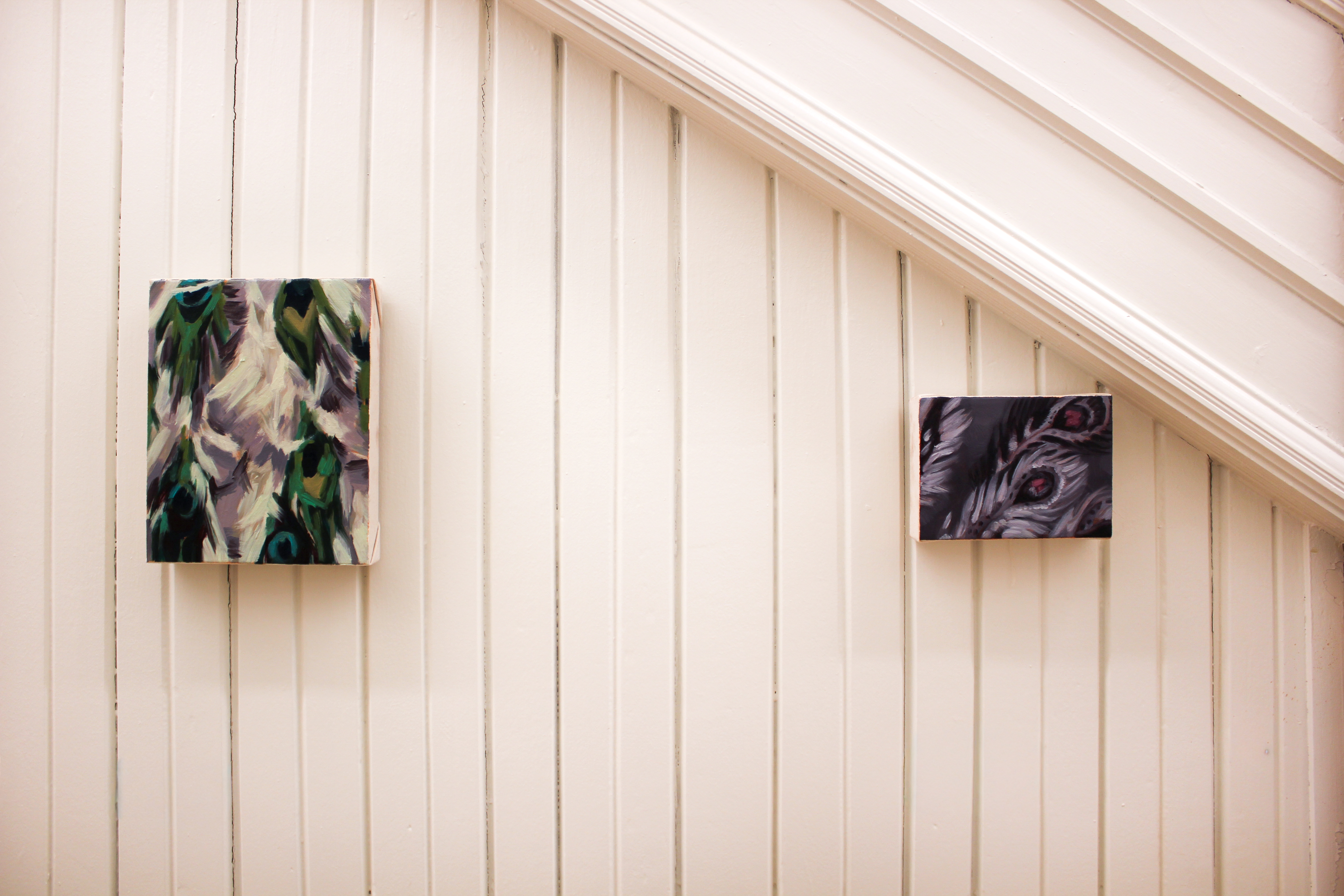 (From exhibition text) As part of her three-month residency at the Aurora Cultural Centre, Julia used gestural painting and physical cropping to explore the formal and conceptual aspects of the term kitsch, contemplating its implications in advertising, identity, and the canon of art history. Through references to found imagery from magazines and the internet, she investigates the ways how accessible visual material can be manipulated and transformed to express critical thought.