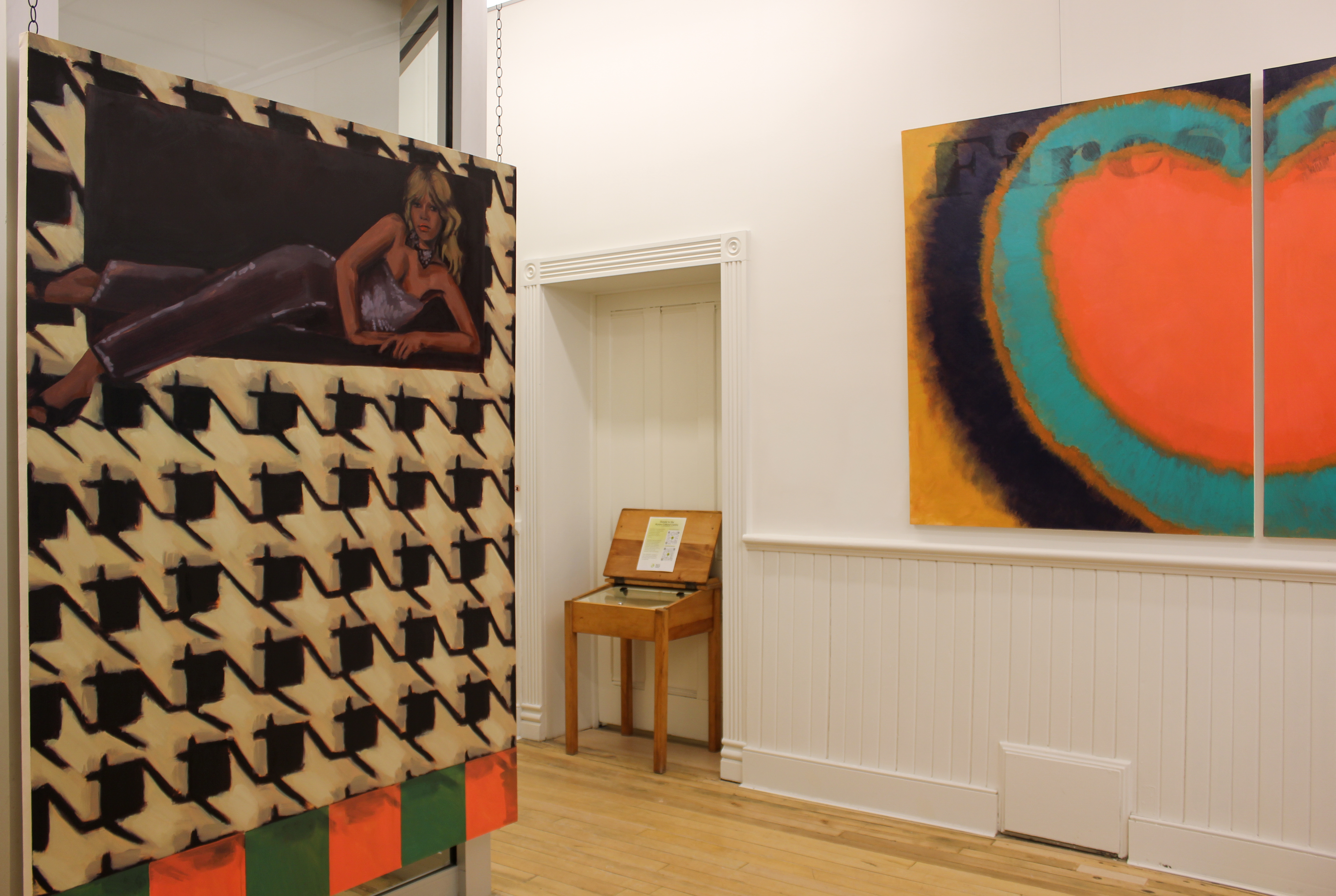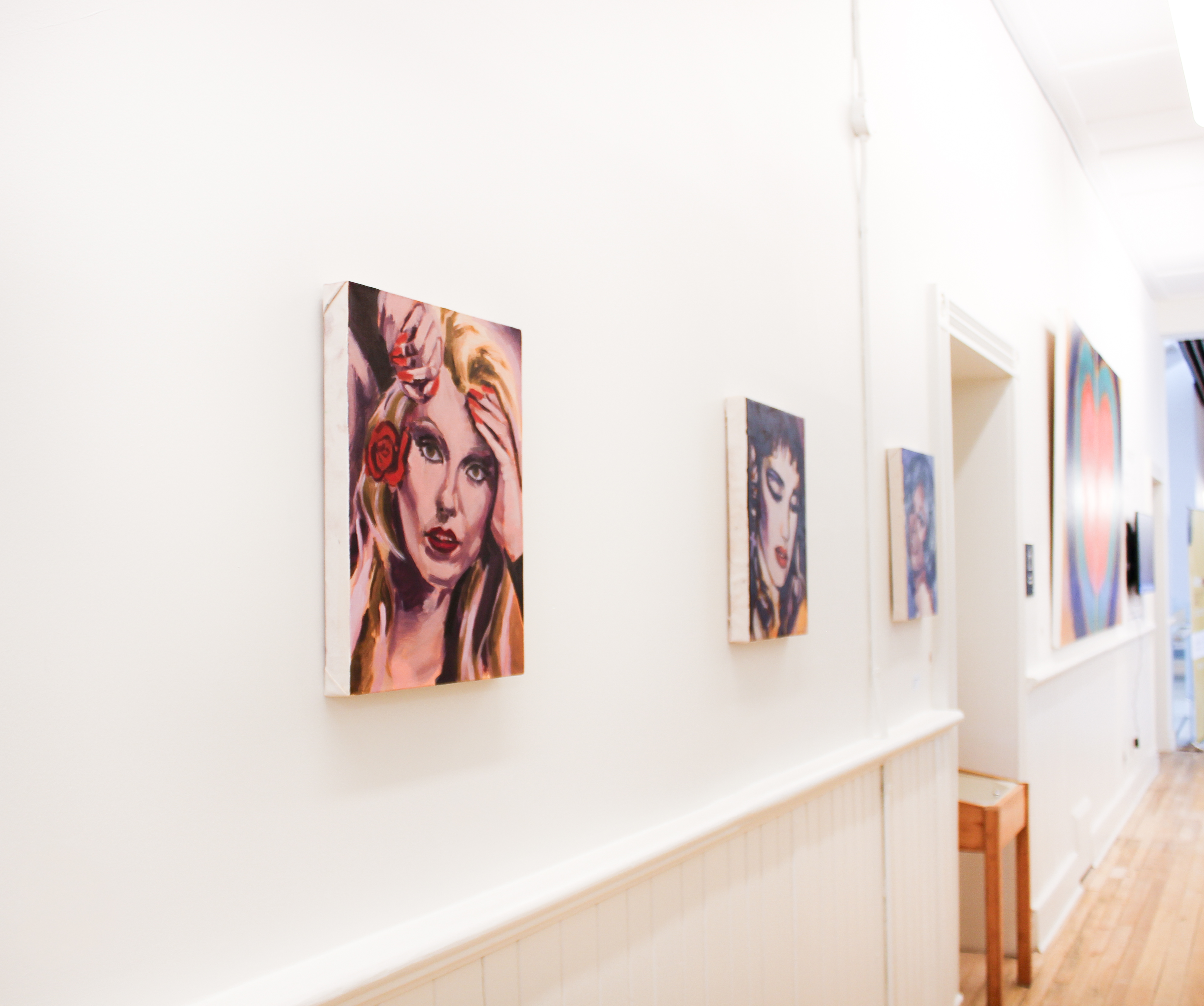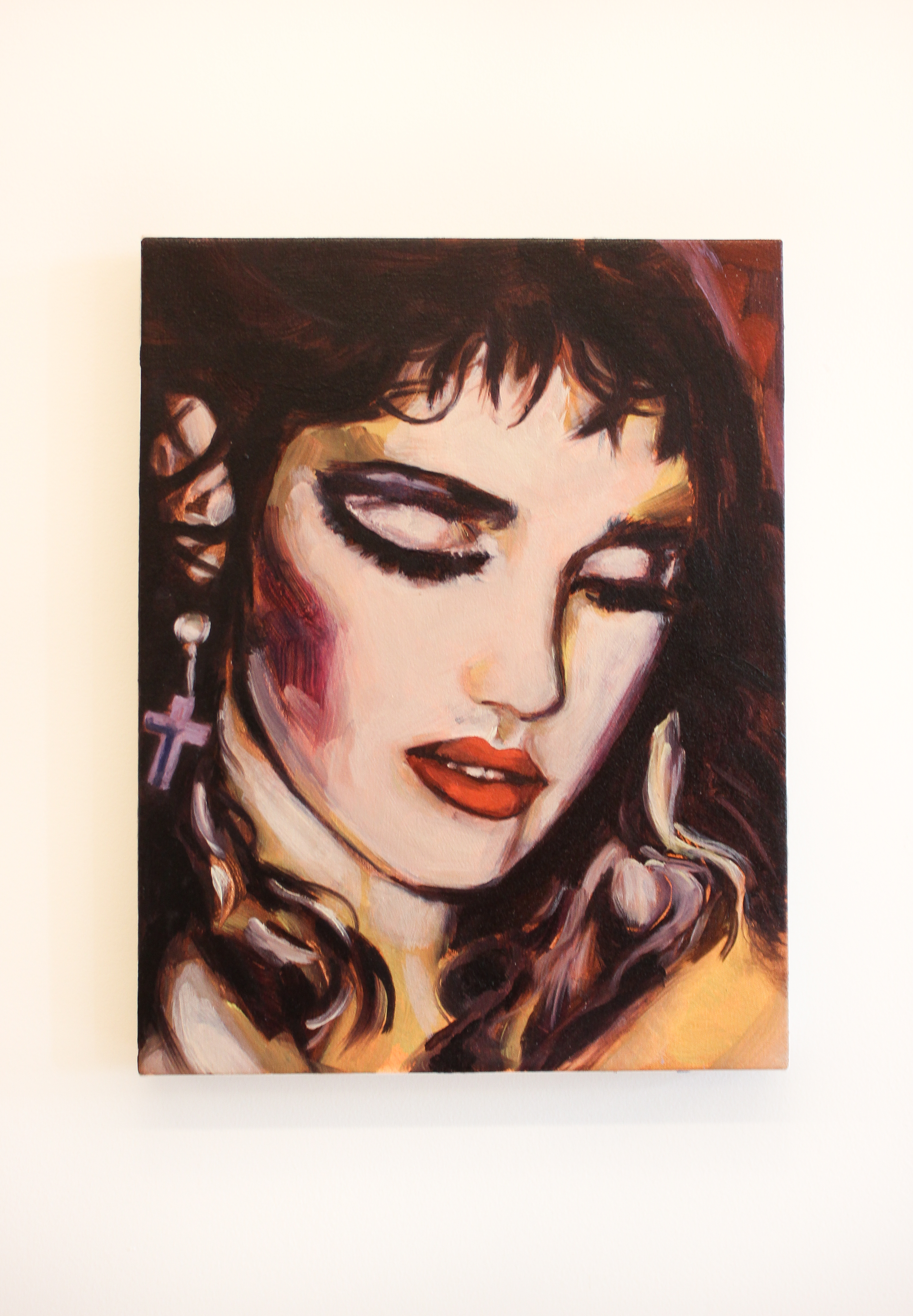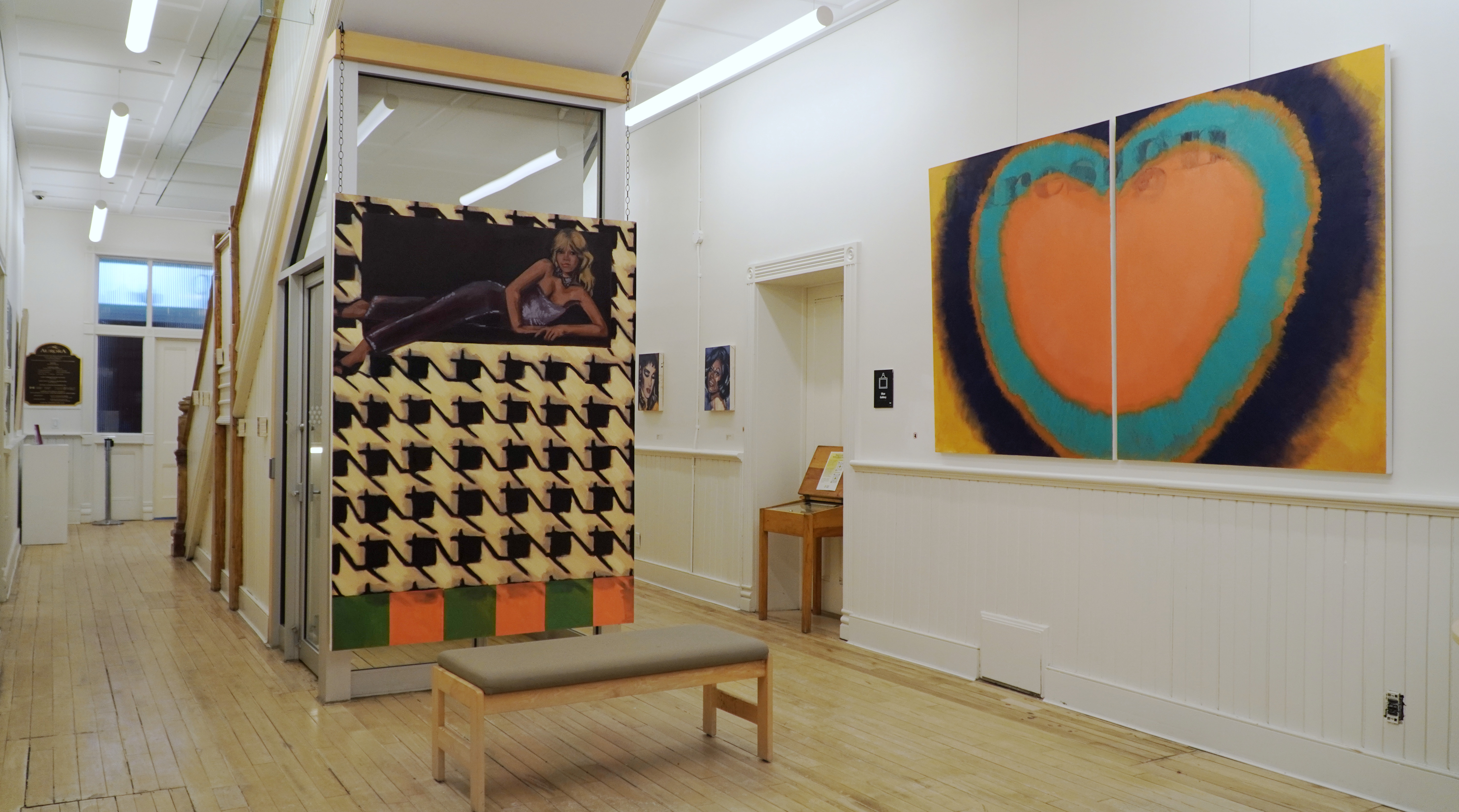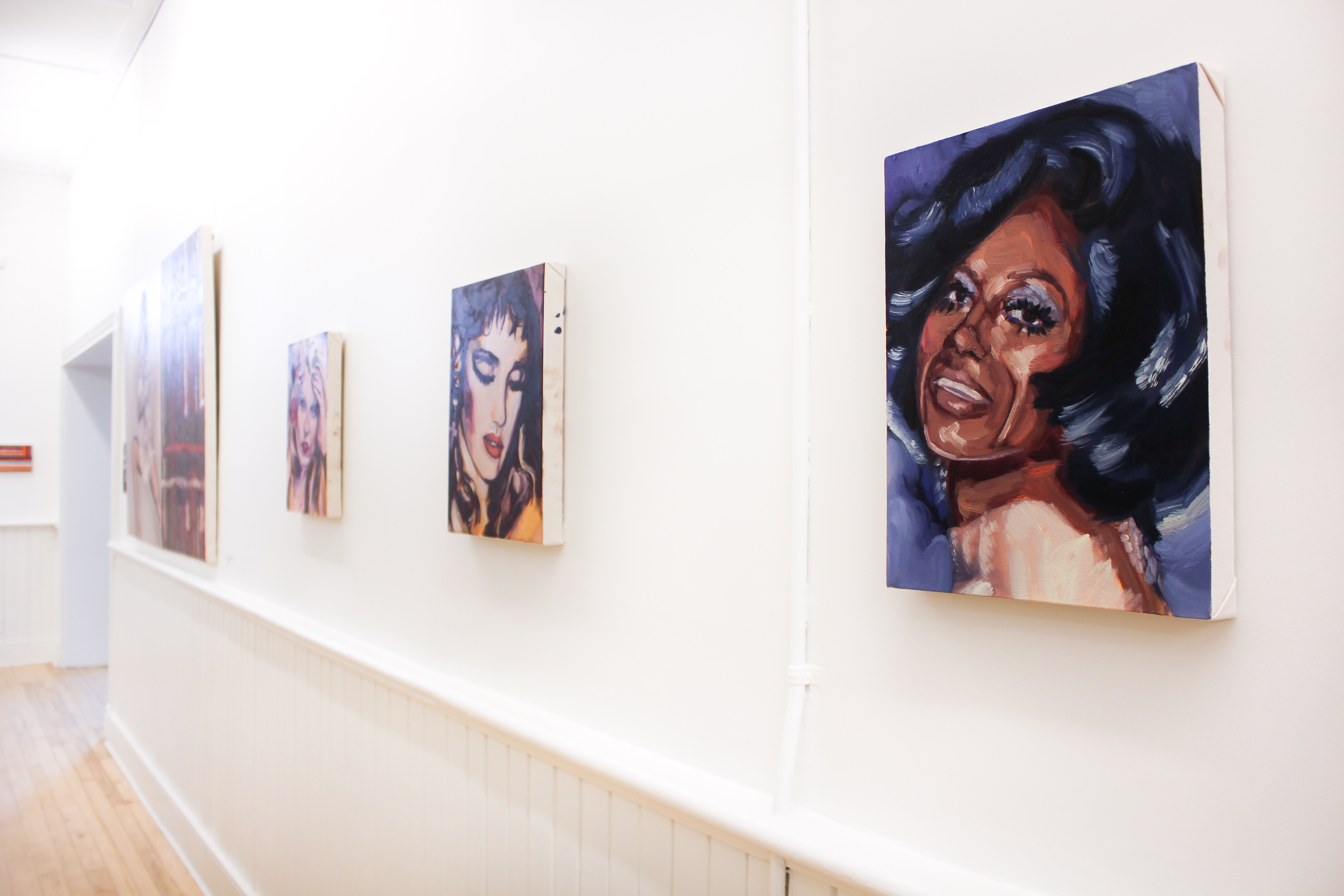 (From exhibition text) As part of her three-month residency at the Aurora Cultural Centre, Julia used gestural painting and physical cropping to explore the formal and conceptual aspects of the term kitsch, contemplating its implications in advertising, identity, and the canon of art history. Through references to found imagery from magazines and the internet, she investigates the ways how accessible visual material can be manipulated and transformed to express critical thought.