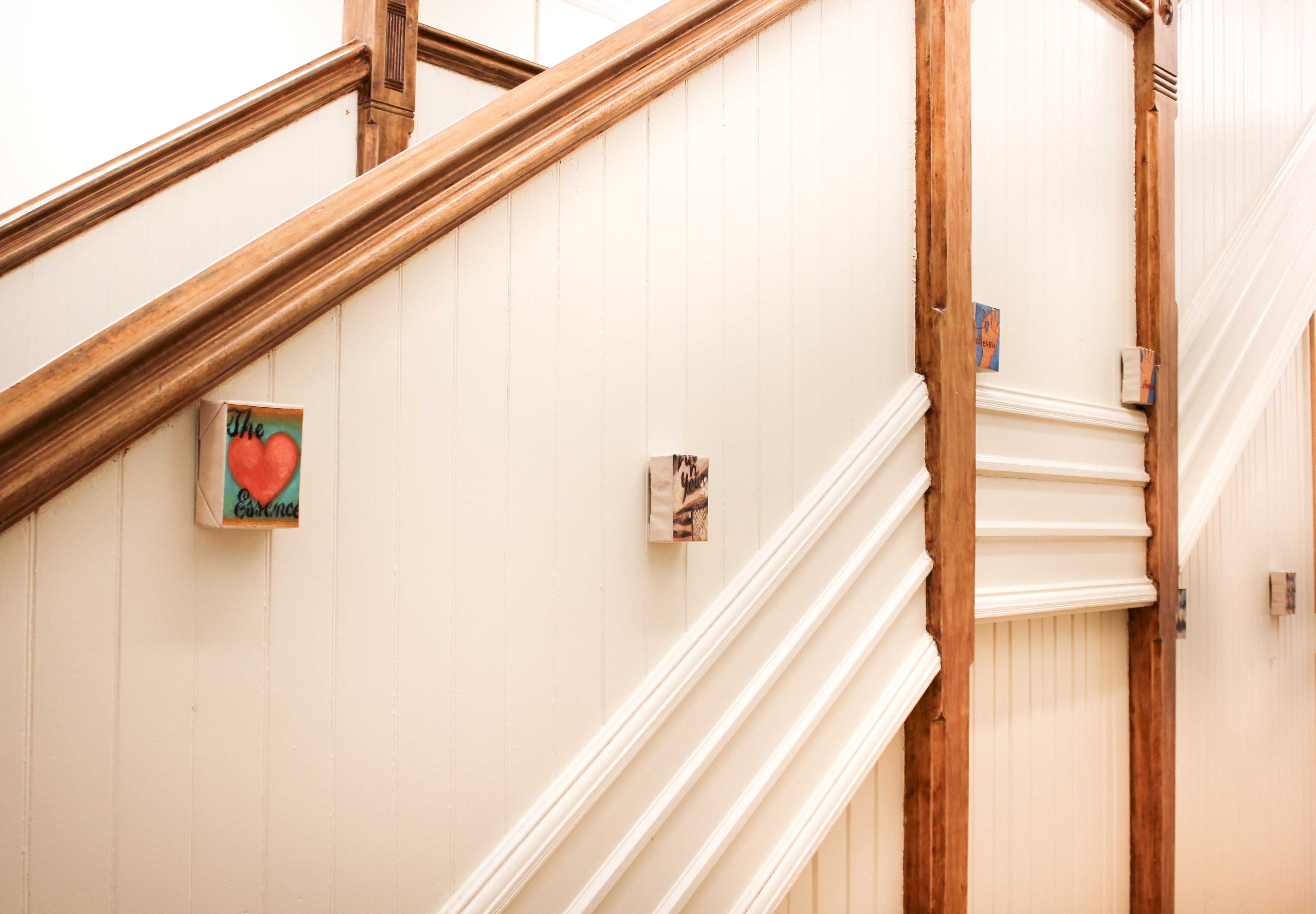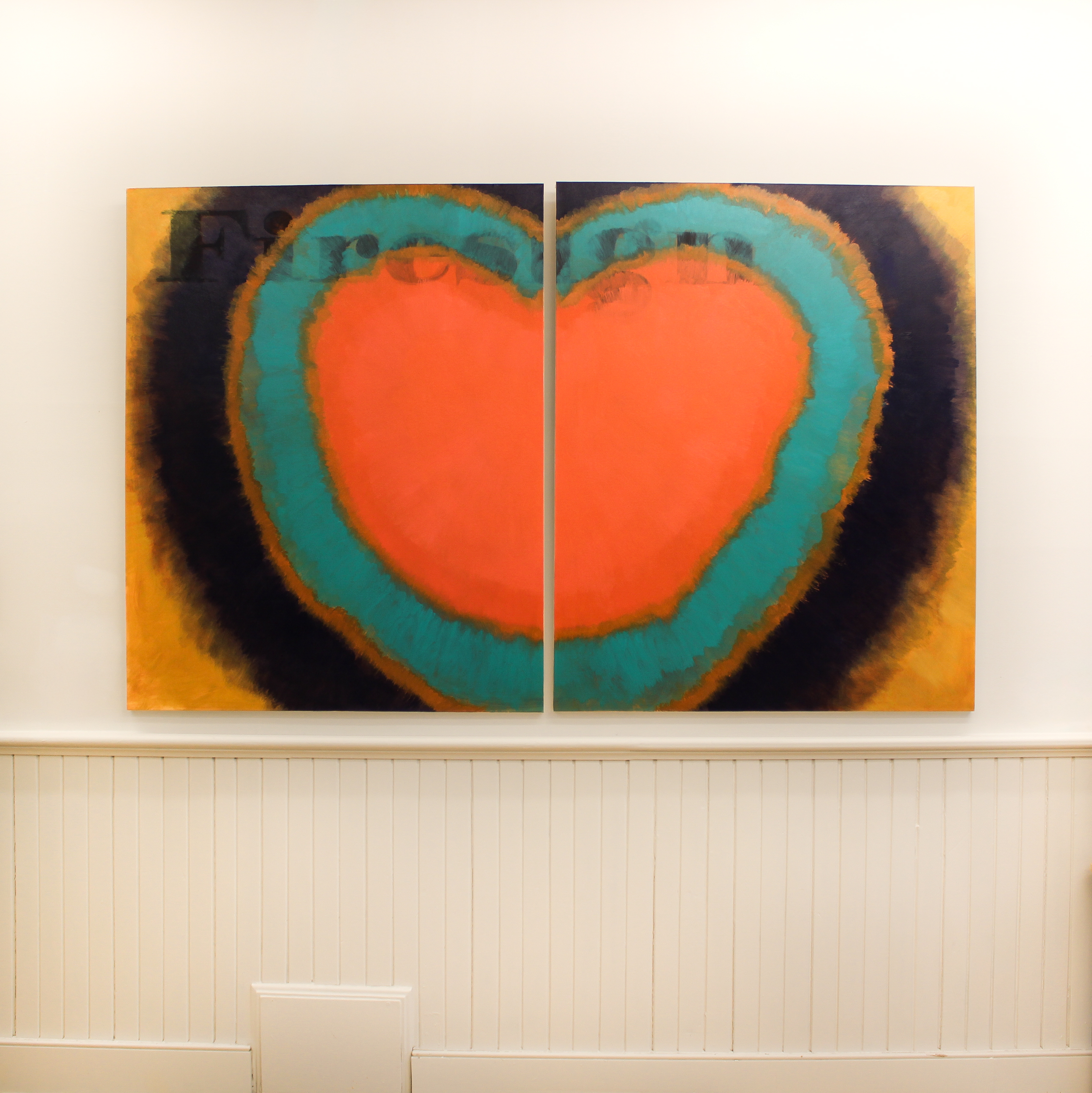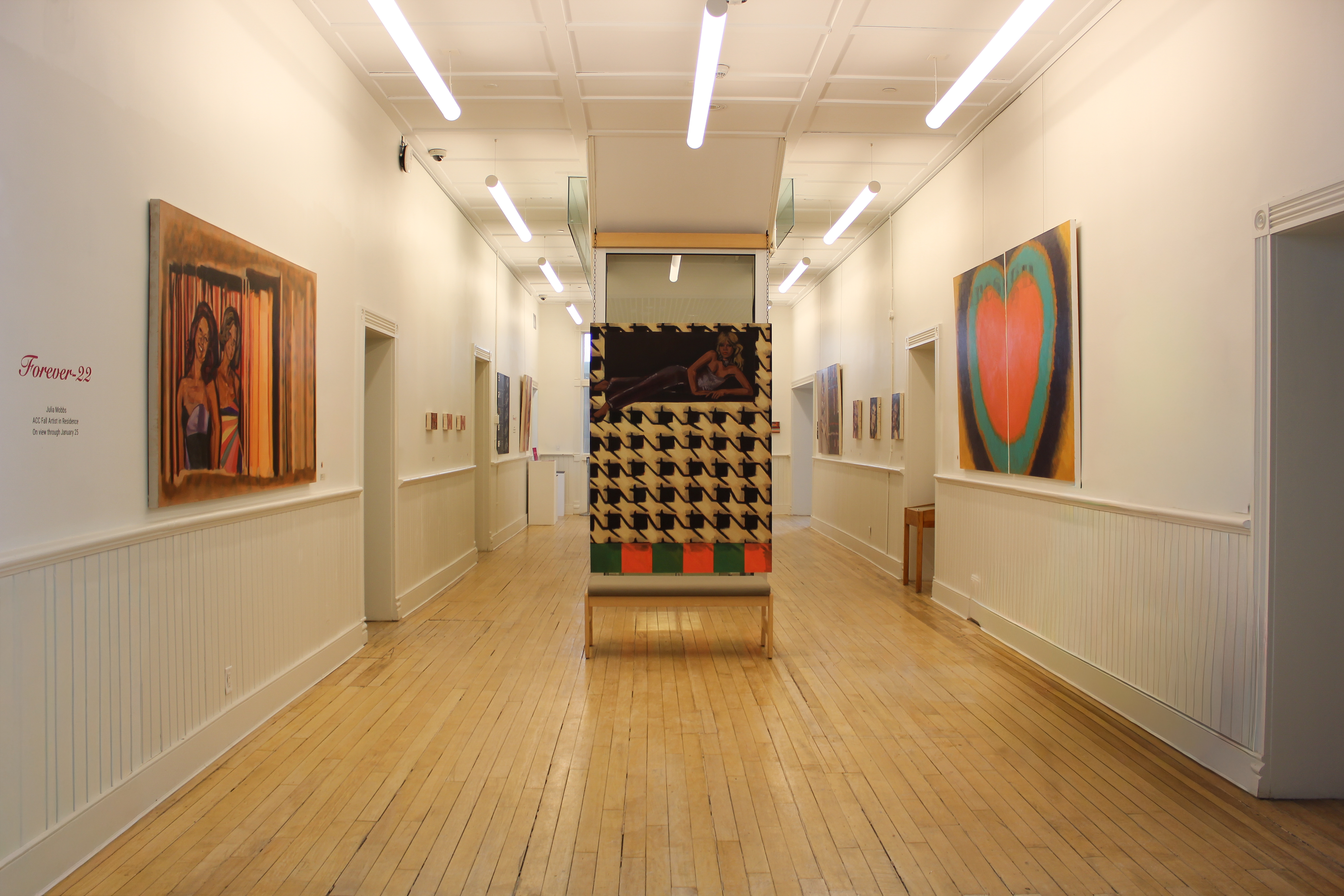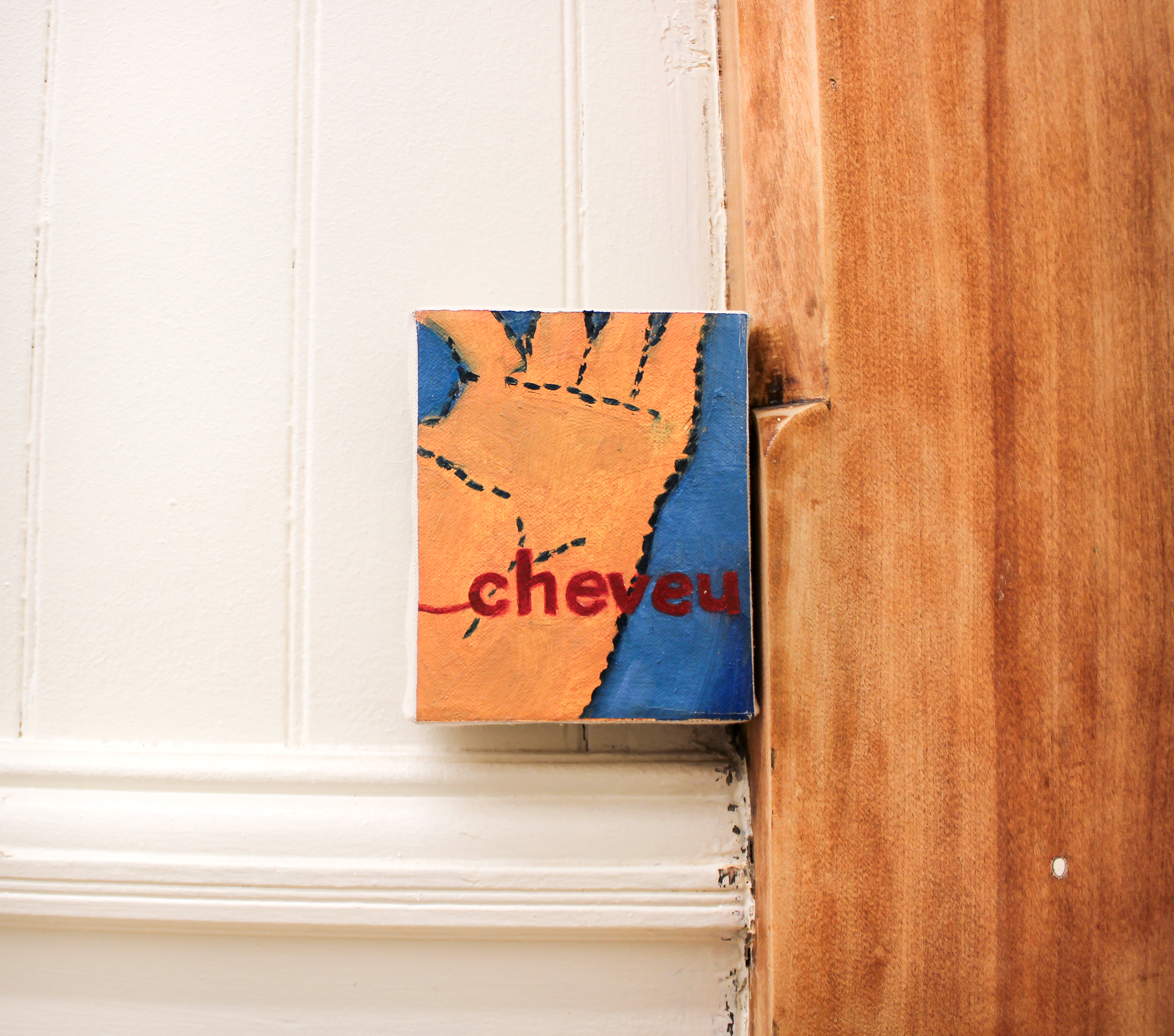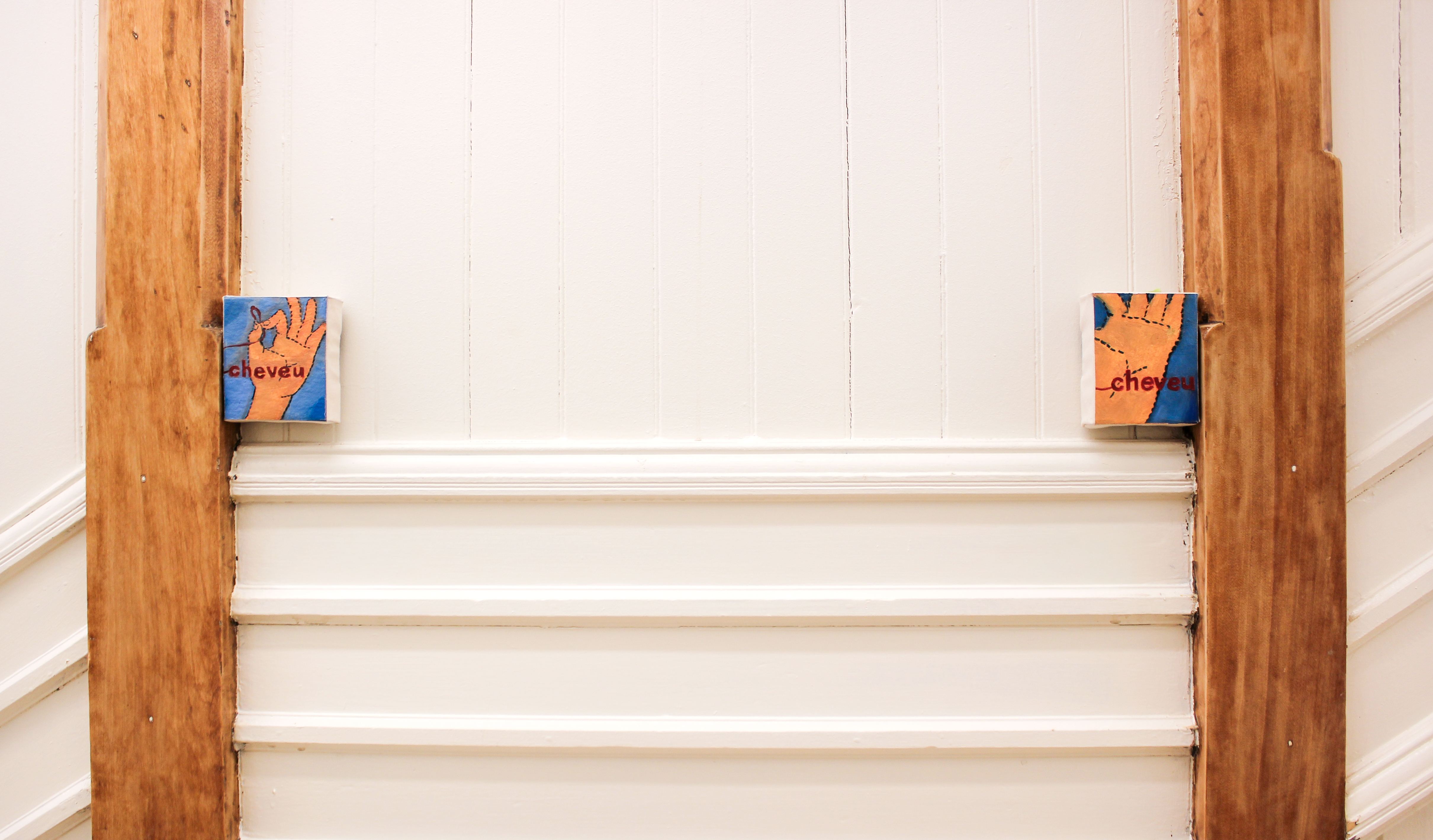 (From exhibition text) As part of her three-month residency at the Aurora Cultural Centre, Julia used gestural painting and physical cropping to explore the formal and conceptual aspects of the term kitsch, contemplating its implications in advertising, identity, and the canon of art history. Through references to found imagery from magazines and the internet, she investigates the ways how accessible visual material can be manipulated and transformed to express critical thought.